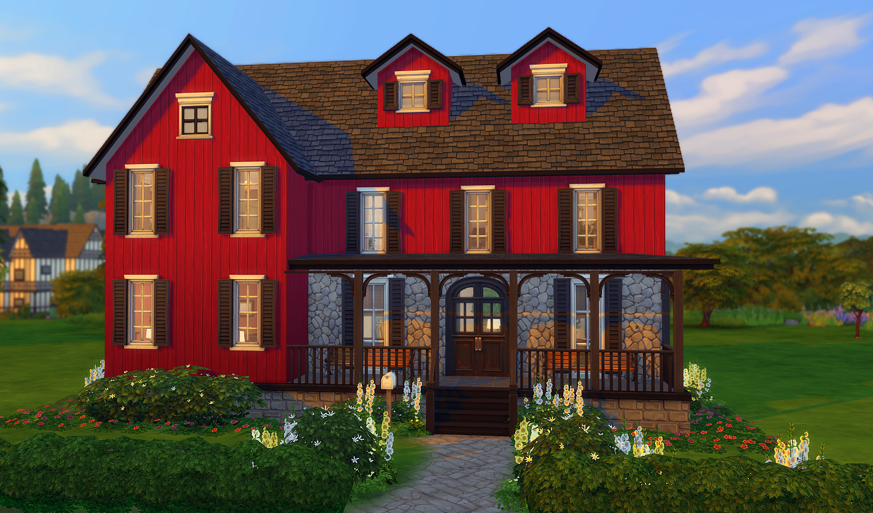 a nice, large farmhouse suitable for a legacy crew without venturing into monster mansion territory. fully furnished and partially decorated; sleeps eight or more sims. objects along the edge of the lot (bushes etc.) were placed with the moveobjects cheat - have it on when you drop the lot for best results.