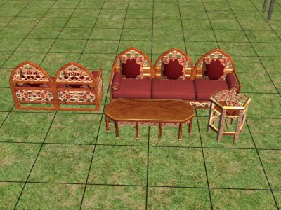 Well this wasn't intentional but i'm running the set on a money hungry sim. and he didnt like my cheap merrocan couches. so i made some a new set to go with this set, for the sims who can't appreciate art. some baro couches and serentiy sitter, some coffee table and an endtable i will end up redoing later. not really nice stuff , but it matches and it's ok for now.