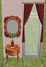 added an end table ( that really should go with the bedroom set, but the pic is already taken), some funky curtains (yes i am working on more curtains), the bonzai tree, and the porclean (sp?) mirror. I'm looking at other mirrors, definatly going to do a grandfather clock, room divider, and few other things i have seen mentioned. I will try to do them all, but only the good stuff will get published. and remeber if you requested it, i saw it and made a mental note. it just takes a really long time to make this set. and i want to get the stuff i have pictured in my mind out first while i still have it in there. the bigger pics up there in the links.