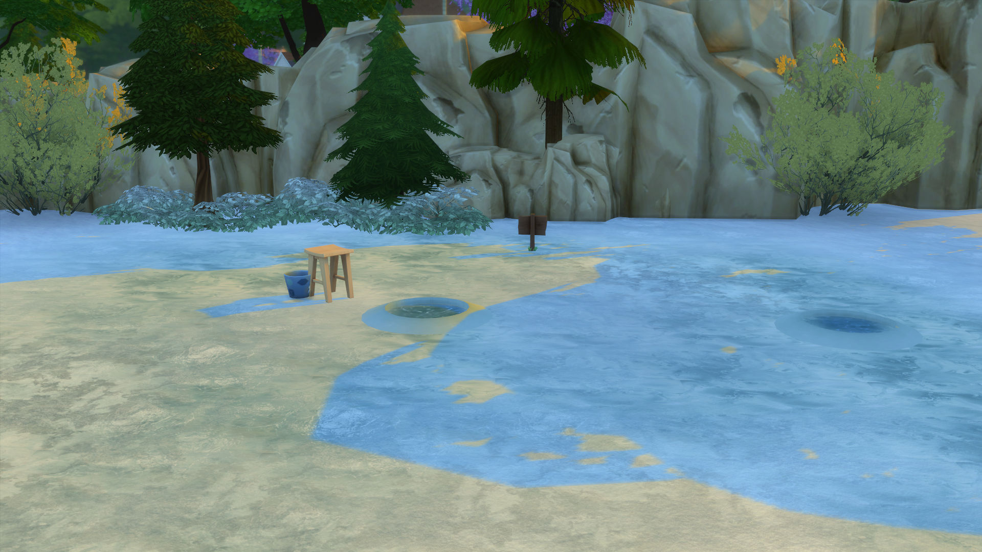 To complete the project, in addition to downloading the Ice Fishing Kit, you will need to download:1) Snowy And Icy Terrains by Snowhaze at MTS : http://modthesims.info/download.php?t=604775