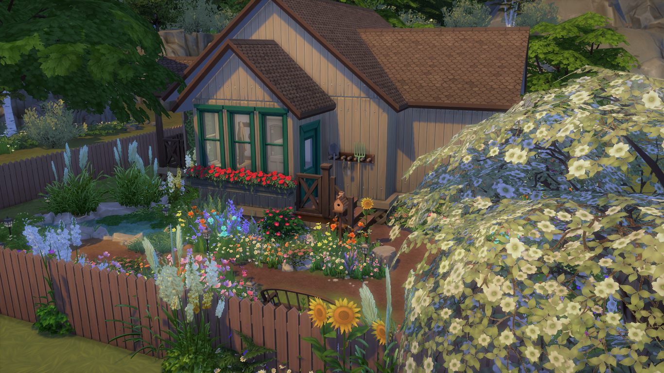The Summer Home is perfect for one sim or it can be used as a vacation lot. It has an open concept living space, 1 bedroom and 1 bathroom. At the back of the house you'll find a place to grill and to do some woodworking. I imagined it as a place for old granny who just did some renovations