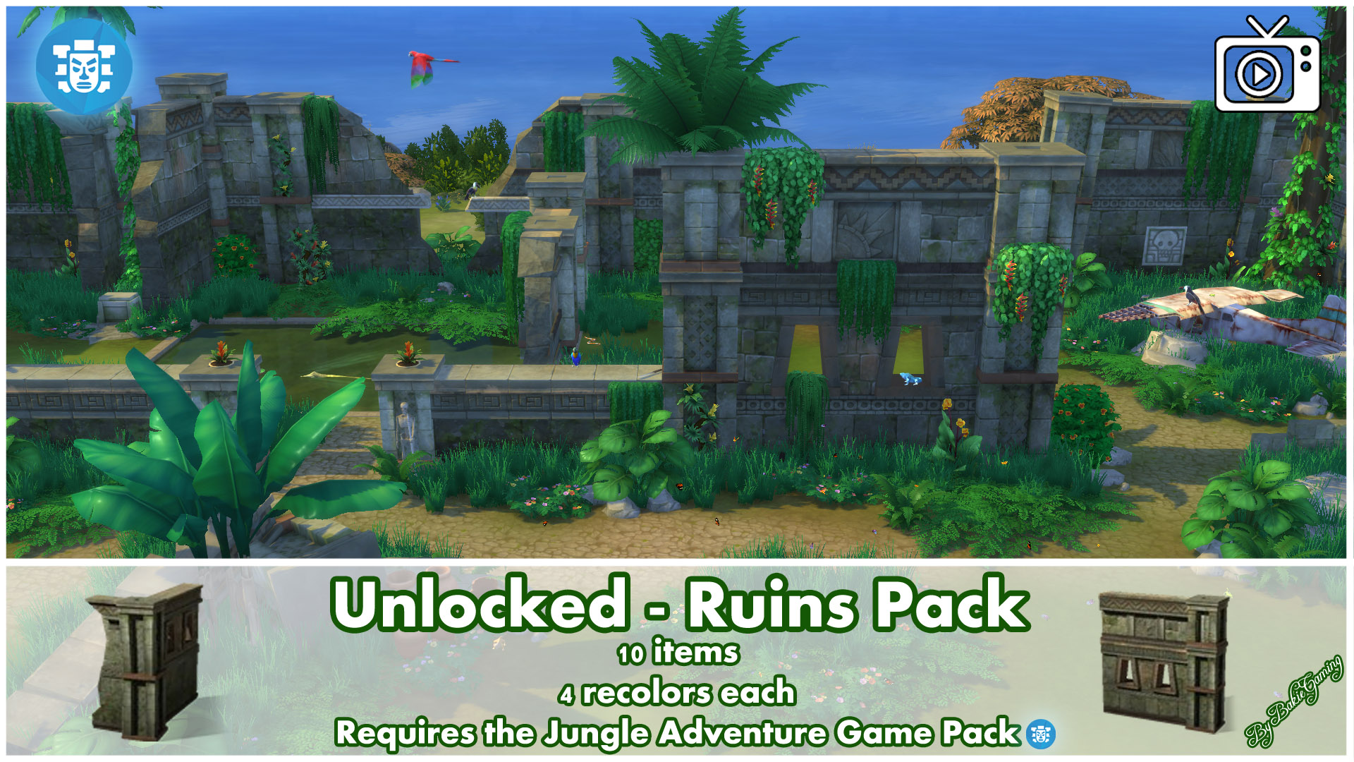 #Sims 4, #Unlocked, #Liberated, #Ruins Pack, #Ruins, #Ruin, #Pack, #Jungle, #Jungle Adventure, #Recolor, #Recolors, #Override, #Standalone, #Bakie, #BakieGaming