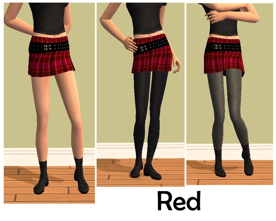 I have frankensteined together the University rebel skirts from puremorphin with the lovely leggings made by CatOfEvilGenius to create 3 skirts with black leggings, 3 with grey leggings, and 3 skirts with no leggings!