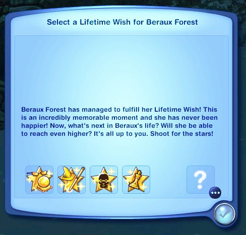 2019.02.06: Updated so that you can cancel the New Lifetime Wish dialog. You may reopen the dialog by clicking on your Sim's completed Lifetime Wish.