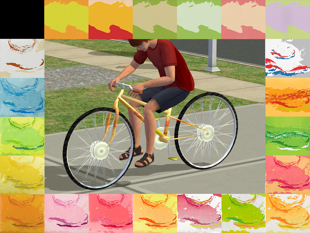 And to be honest, I think they came out wonderfully. The pattern reminds me of some of the racing cycles I've seen for sale in sporting goods stores. Unfortunately, I didn't see a way to recolor the seat, but the pedals and handlebars are coordinated to the frame.