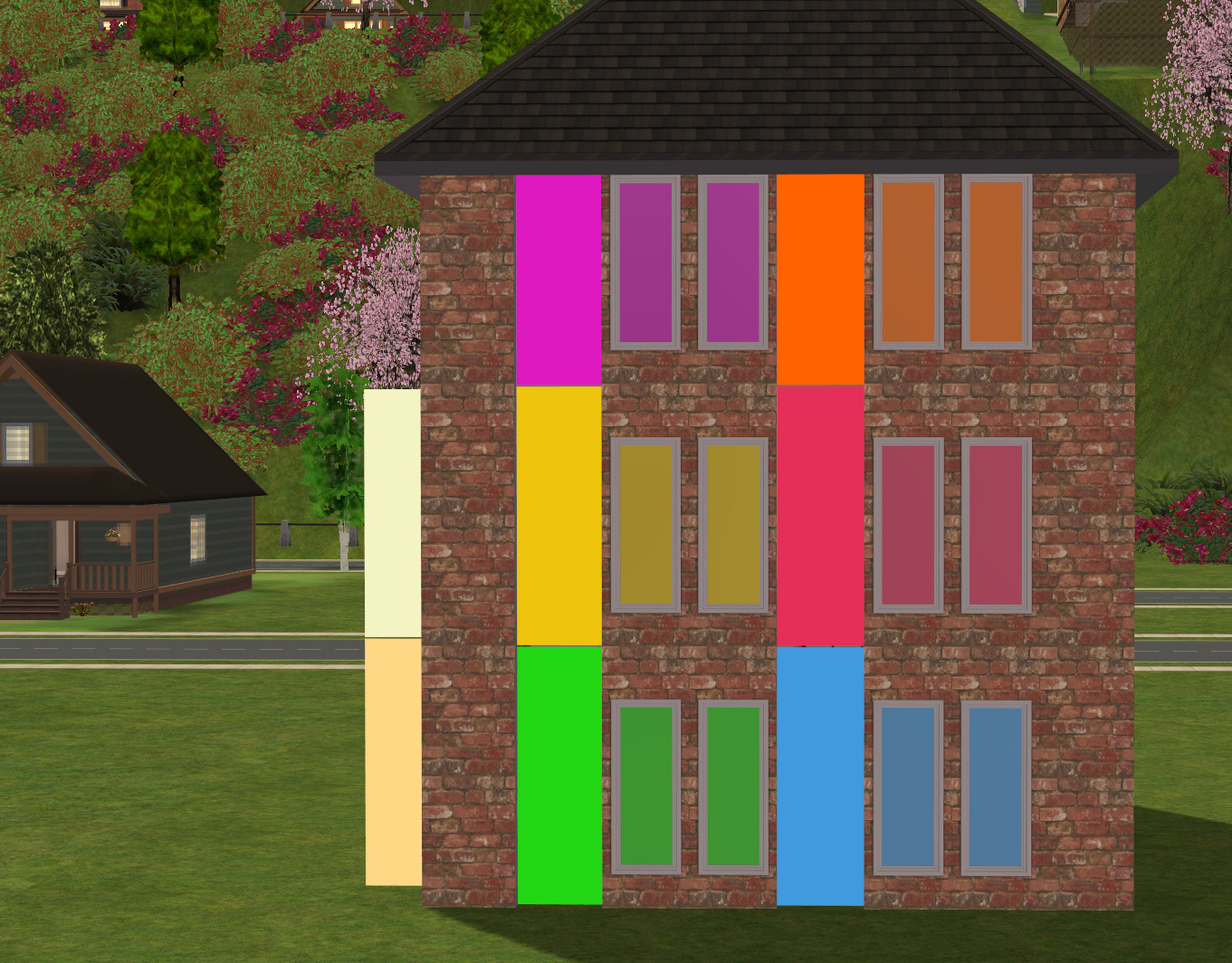 ISSUES: The lot imposter doesn’t always appear lit in the neighborhood view. Entering an unoccupied lot that has all of the same light colors (or placing them if no lot exists) and saving seems to be the most reliable way to update the lot imposters and “turn the lights on” but you have no control over how the light effect will display.