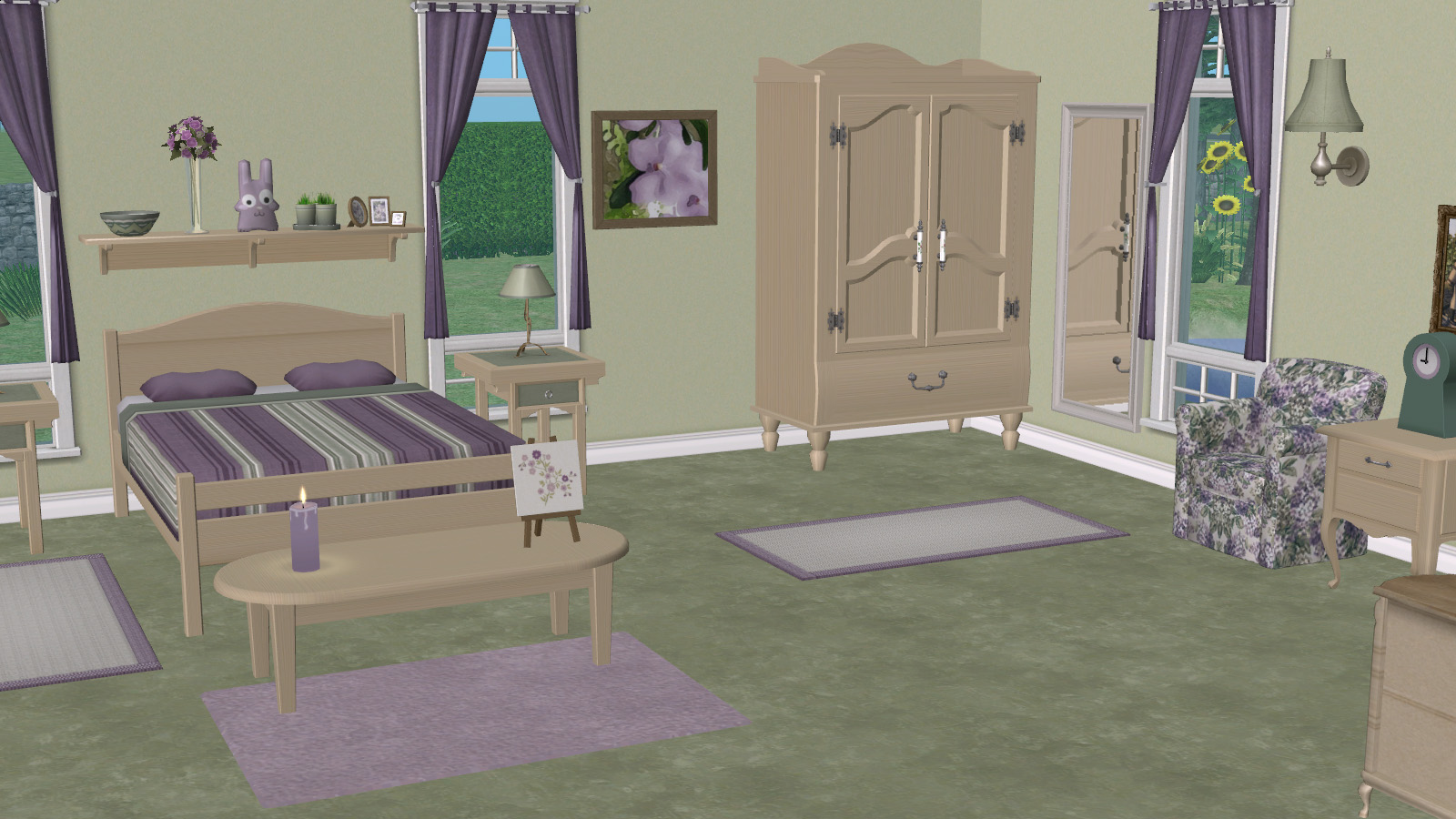 So! After a weekend in the briar patch (aka "Not Outside Where It's Somehow Both Soaking Wet And Stupid Hot") I'm ready to upload a bedroom for the Lilac theme! A lot of the Seasons and IKEA HEMNES objects seem to lend themselves to this theme, but there are still plenty of base game recolours included. I decided not to do desks since there's one in the Lilac Living Room, and I'm planning to do more for the upcoming study/den. Also you might notice if you have my Lilac Bathroom that the Antique Lace Curtains are a repeat... Yeah, I totally meant to do that. By which I mean I totally did that by accident, but then I thought the newer ones came out better, so I went ahead and left them in. YMMV. There are 2 new wallpapers and 4 carpets included -- again, I have a couple more Lilac rooms coming up, along with the few I've already done, so I didn't wanna flood everybody's build mode with too much of the same (so, some of the pics above have walls & floors from the other sets).