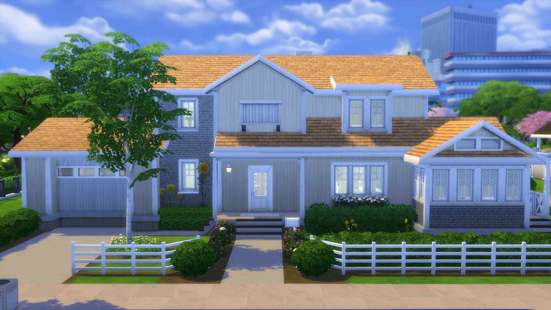 Some of you may notice that this home looks very similar to my 4353 Wisteria Lane house from earlier this year - that house is my dream home. If I ever had enough money to build my own home on my own plot of land then 4353 is exactly how I would want it to look. I uploaded four different versions on that home to ModTheSims, (two Sims 3, and two Sims 4 versions) because I love it THAT much that I want to keep redoing it to make it look better as the years go on. HOWEVER, upon further inspection you will see that this house is actually a brand new, flipped, mirror image of 4353 Wisteria Lane. The floor plan is about the same (albeit flipped) in both houses, but the major differences are the landscaping and interior furnishings. This new house is on a larger lot and features CATS AND DOGS ONLY whereas 4353 required quite a few different packs to have it look exactly how it did in the screenshots. This house also has an additional bedroom.