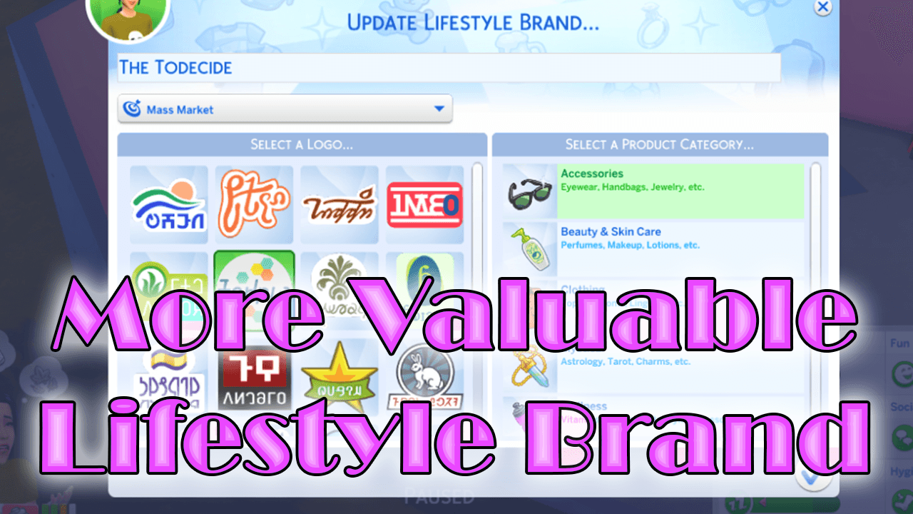 It was very underwhelming when my lovely accessories brand The Todecide only made $138, so I made a correction to make the Lifestyle Brand worth more than the scrap I can scavenge out of trash piles. Now they really mean something!