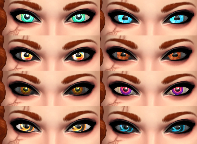 And so I took the default Maxis eyes (all except the black shark eyes) and added to them glow, black sclera, and a combination of both.