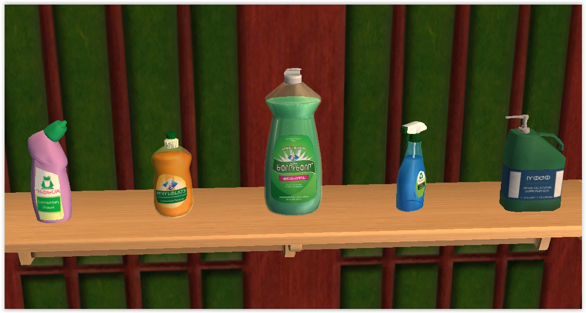 The Nemestnaya objects are old, and very high-poly for single-tile objects. I have done the best I can to reduce them, with no meshing skills. The Dish Detergent and Spray Detergent can't go any smaller, or the liquid texture is ruined (I reduced the lid textures as much as I dared, they aren't as pretty as they were.) The white Detergent kept losing its label, but I finally found a different trick which got it below 3000 polys, with label intact.