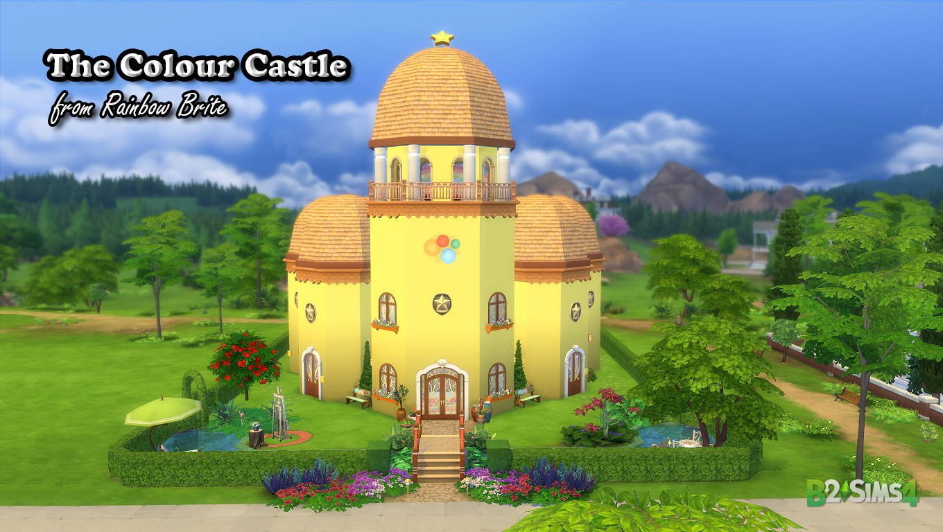 The Colour Castle is the home of Rainbow Brite. The mighty tower sits in the center of Rainbow Land, and is where the Colour Kids and Sprites create Star Sprinkles. In the centre of the castle is the "Colour Console" and the surrounding towers hold self-contained apartments for each Colour Kid. Surrounding the castle is a moat which includes a swimming area at the front and various activity areas around the lot.