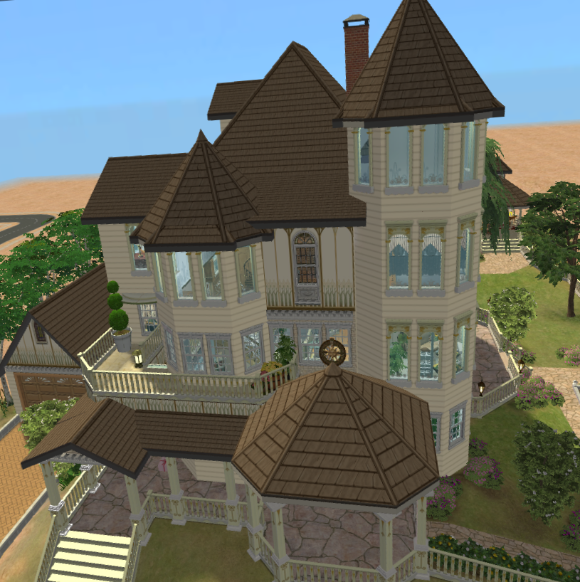 But, with a little polish, a few flowers, a garage, three new sun decks, an added attic, a chimney relocation, a three-story living room, and three hundred-thousand simoleons worth of decorationg, it is now... The Cream of the Crop