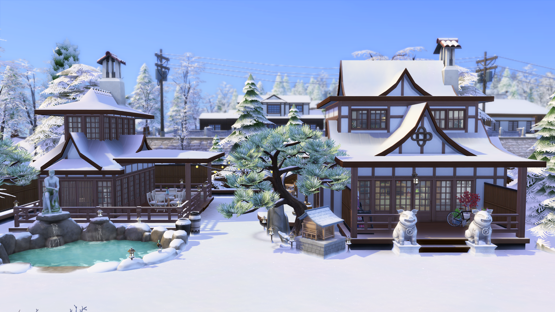 Enjoy this beautiful oriental inspired lot. A beauty in wintery weather. Enjoy the hot springs or just a nice sauna with friends and family.