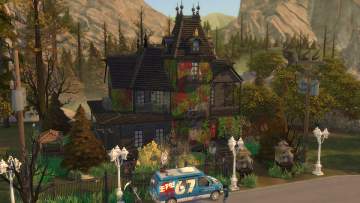 A haunted mansion for your sims. Keep in mind that this house has not been furnished to actually live in but more a set for your sims paranormal activities. It's a victorian style house with plenty of rooms where your ghosts or vampire sims can live in.