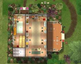 This cozy shop features lots of plants, chess tables, and an espresso bar. None of the plants are actually buyable unless you own it as a business, so it's pretty much just a hang out spot. If you do take the plunge into entrepreneurship, I would recommend TwoJeff's perfect plants mod.