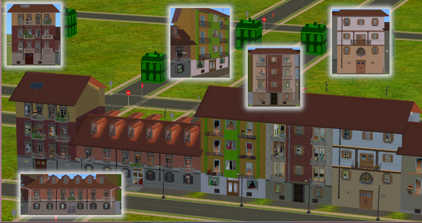 The apartments have alphabetical names so they're easy to distinguish. Rowhouse Amore, Bellezza and Dolcetto are available as middle row pieces, leftends and rightends (I mean that you can place them on the edge of a row to end it without having unrealistic walls sticking outside).