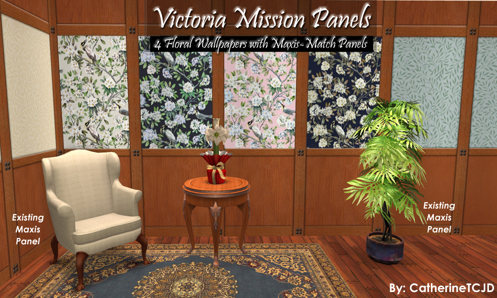 Victoria Mission Panels ~ 4 Floral Wallpapers with EA/Maxis-Match Mission Panels