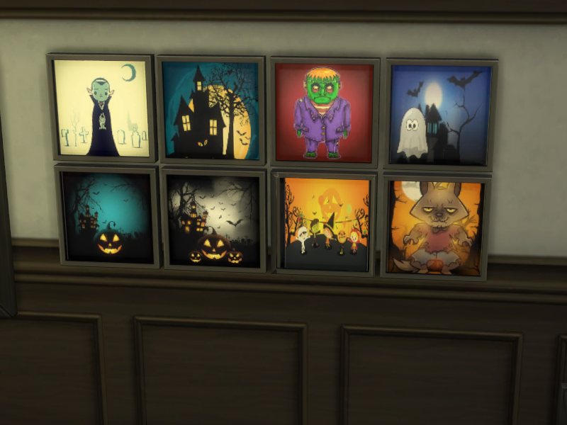 This recolors EA picture Baby Bug Nursery Art for the halloven version. There are 8 different pictures.