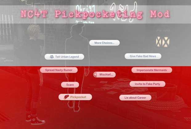 Witam wszystkich polskich graczy the sims! To NIE JEST mod, tylko tłumaczenie do moda autorstwa NC4T pt. Pickpocketing Mod. Aby to tłumaczenie zadziałało, musicie tą modyfikacje pobrać OSOBNO, a dopiero potem wrzucić to tłumaczenie do folderu Mods, w to samo miejsce, gdzie zainstalowaliście NC4T Pickpocketing Mod.