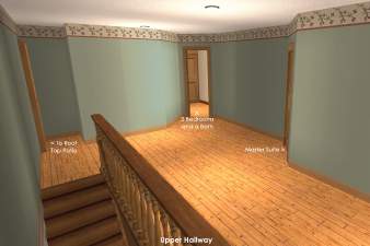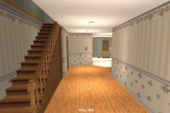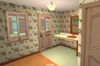 I kept the original wallpaper and flooring choices, for the most part; but changed the style of roof. The pond is a little bigger now too.
