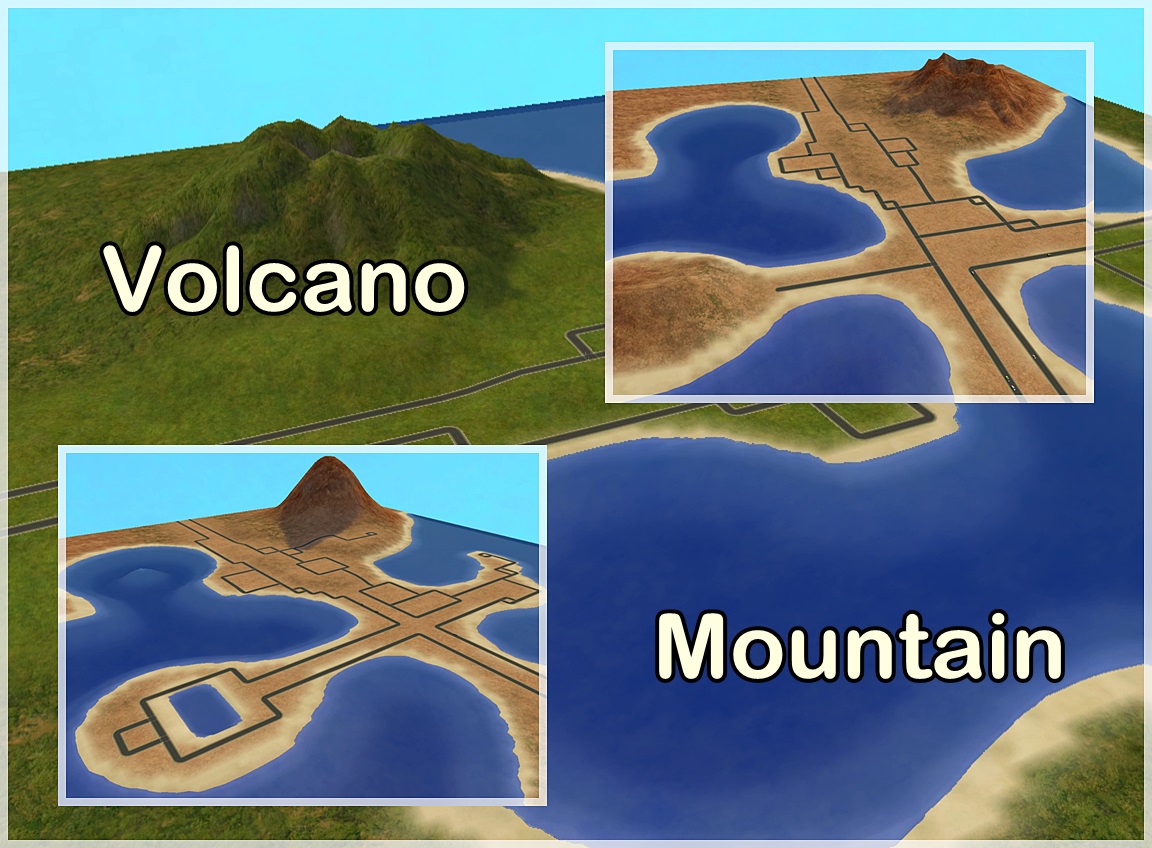 with these neighborhood templates you can create the dream neighborhood, two map versions are included, one with a medium-sized volcano whose road plan was designed for those players who want a map with centered roads and easy maneuverability without using a camera mod.
