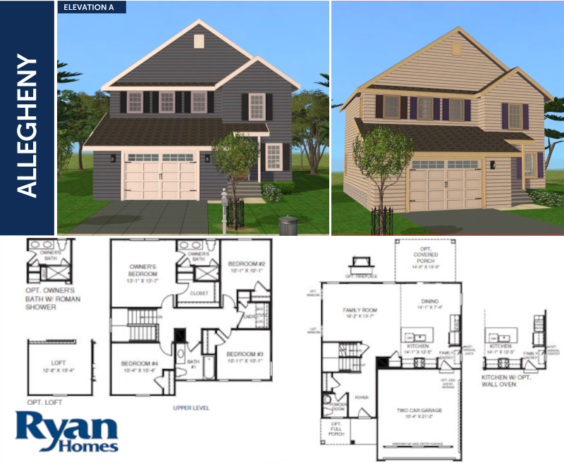 "The Allegheny single-family home allow today’s families to easily spend time together or spread out. The convenient family entry off the 2-car garage controls clutter. The inviting family room opens to the dining area and gourmet kitchen, so entertaining is easy. Extend the living space outdoors with an optional covered porch. Upstairs you'll find four bedrooms, or three bedrooms and a loft for more gathering space. Your luxury owner's suite comes complete with a walk-in closet and double vanity bath. Finish the basement for more living space. Come see all The Allegheny has to offer."