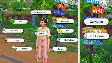 When you click “Drive to” on your Sim, self-driving will be enabled, and when you click the Sim again, the movement menu will appear. - The Self Drive menu has a Go Home menu that I added, which allows your Sim to instantly return home from the spot.