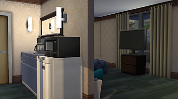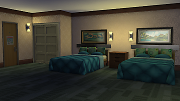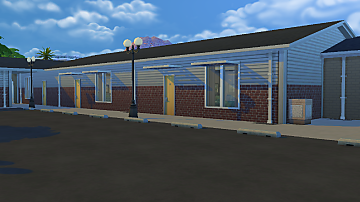 This is an American-style motel from the 1990s that I built for a story. It was designed to resemble an actual motel from my hometown, combined with various motels I've stayed in. I tried to keep the floorplan as consistent with real space as possible, putting noisebreaks between rooms and avoiding plumbing fixtures on exterior walls. The only artefact is the carpark; the lot was too small to build a space large enough for two rows of parking stalls and a thoroughfare. But, TS4 doesn't have any cars anyway, so who cares, right? The manager I mention in the library description lived onsite in my story, which explains the weird single on the edge of the property with the full kitchen.