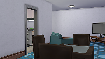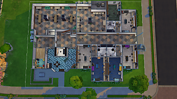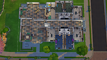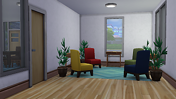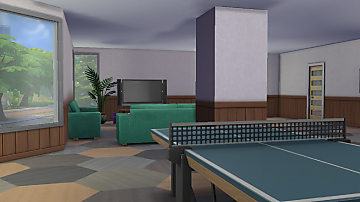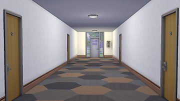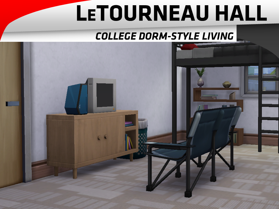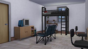 Admittedly, there are probably more beds in this lot than can be filled, but I didn't want to upload something with a lot of TS3-style void space where people probably live, but you never see them. Nonetheless, the innermost bedroom on the first floor (US 2nd floor) I decided would be better suited for the RA's office and a storage room. After all, I mentioned a resident assistant in my catalogue description, so I figured she needed a place to do her work.