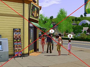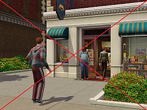 *If multiple rabbit holes are on the same lot (like Mirabello Plaza in Sunset Valley), Sims will be attracted to the theater, but not the grocery and bookstore for shopping purposes. The Plaza is a Sim-magnet.