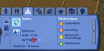 Squire - 37 simoleans p/h, 08:00 - 17:00, M-F