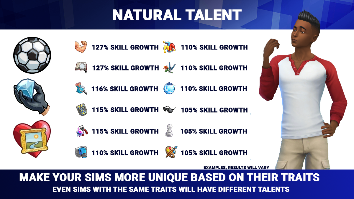 - Even Sims with identical traits will feel different thanks to randomized natural talents!