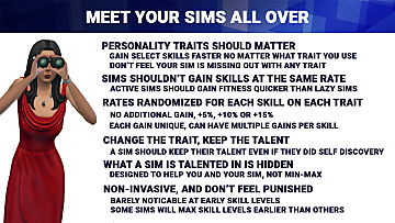 - Makes traits feel more impactful in shaping your Sim's skills and talents.