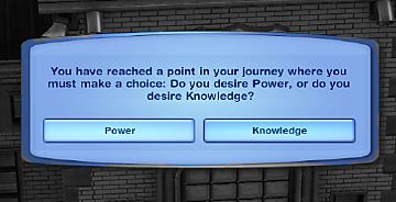 To become a Paladin a Sim must choose “Knowledge” and then “Power”:
