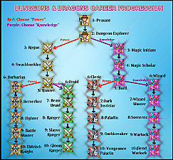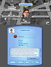 This career branches once after level two, where your Sim must choose either Power or Knowledge. The career then branches again after level five, where your Sim must again choose either Power or Knowledge. Choosing Power twice will make your Sim a Fighter, choosing Knowledge twice will make your Sim a Wizard, choosing Power and then Knowledge will make your Sim a Ranger and choosing Knowledge and then Power will make your Sim a Paladin. Each of the four possible career branches has their own unique Skill requirements. The career also has its own set of opportunities, which are flavoured as “Quests”.