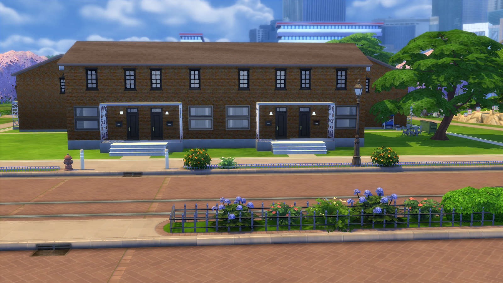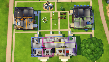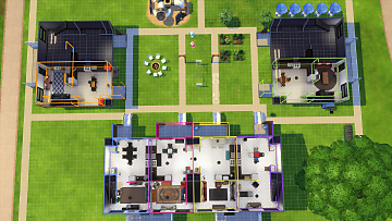There are 8 lots in total. 6 livable (one way or another, lol) and 2 empty without doors. (I found that when I played on this lot, Sims would enter the empty lots, as if they were community spaces. So I removed the doors to stop all of that.) Each lot is decorated differently, however all of the bathrooms are the same, so I didn't show any photos of them.