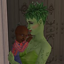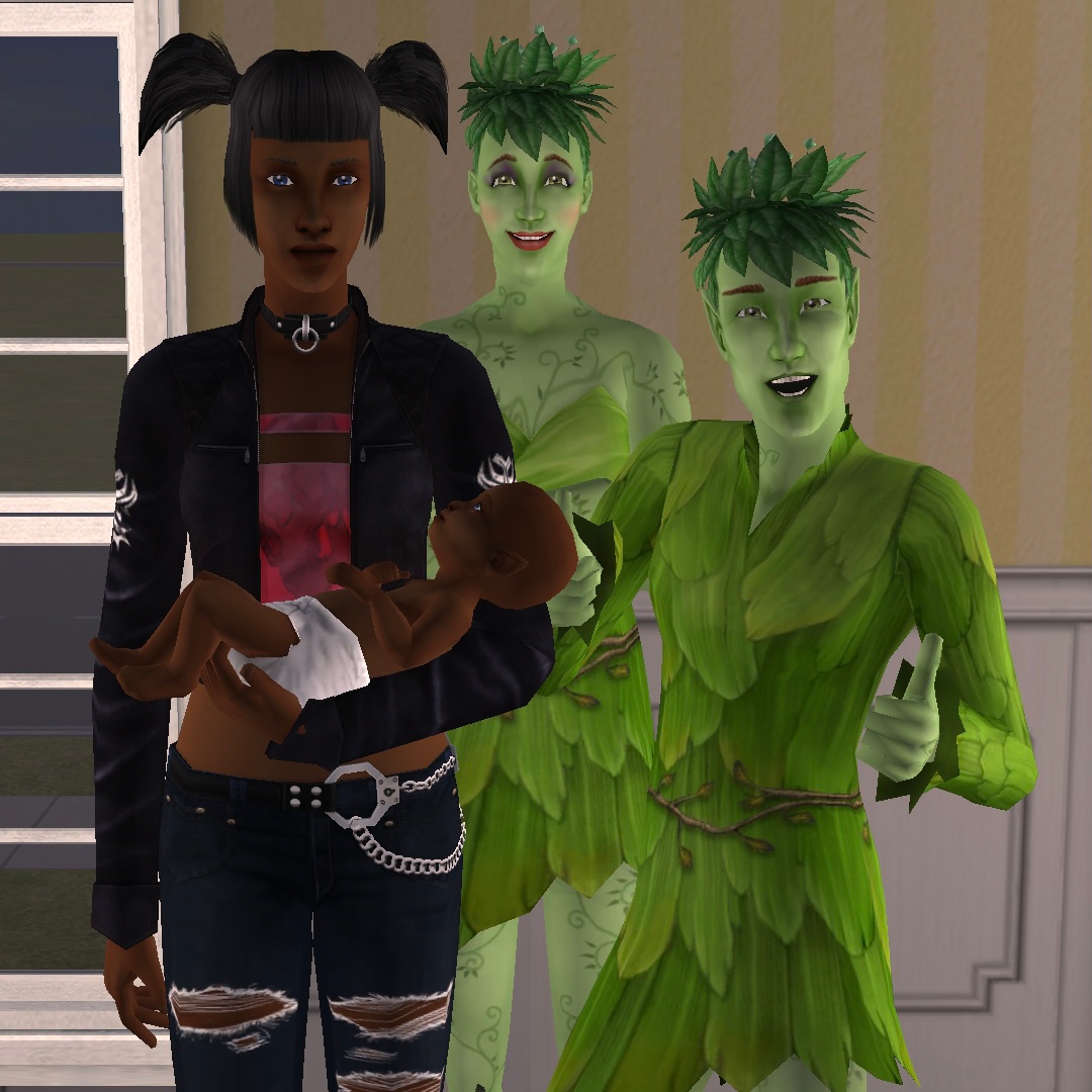 notice how baby is a mix of his mother's 18th face template and the basic one pre-Meowingcookie, no trace of their plantsim ancestors