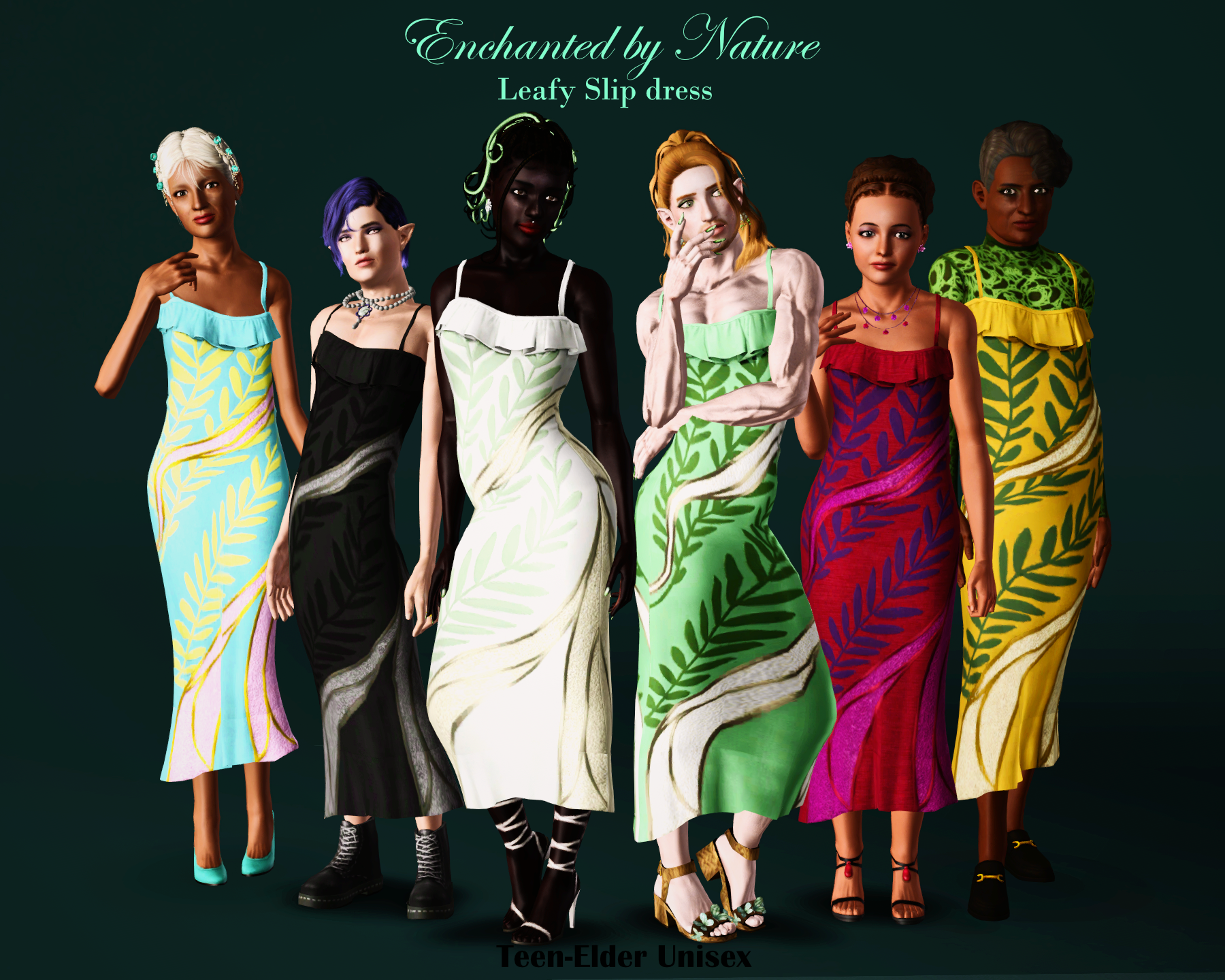 TS4 Enchanted by Nature's "Leafy Slip dress" Converted for teen-elder Unisex