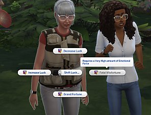 Fatal Misfortune- Instantly executes the target Sim with one of 5 random deaths. Each death has an equal chance of happening, but one of them can happen outside.