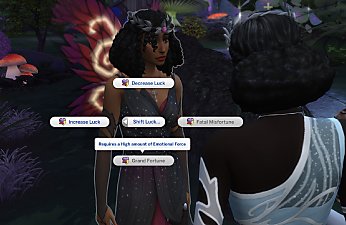 Grand Fortune- Rolls from 5 potential boons with weighted chances: Promotion, Fertility, Fame, Money, and Romance. Fairies can either cast this on themselves, or other sims.