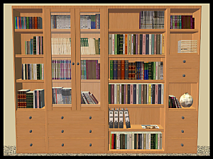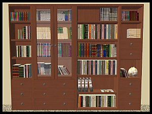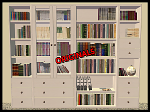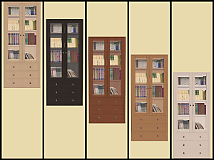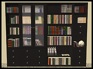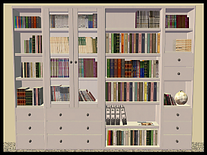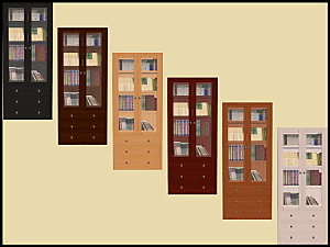 Cassandre's DOTY Classic Bookcase1_MAIN recoloured in AL Wood, LACK and MALM Colours. I have included the MASTER MESH, however you will have to visit sims2artist to get the rest of the amythestfenix's repo'ed expansion set HERE.