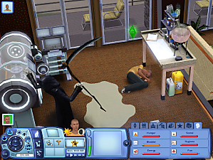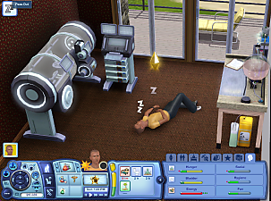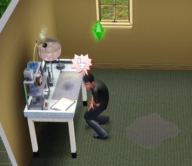 As it turns out, the actions for the chemistry table don't automatically cancel when needs get low. Which means sims will keep working at the table until they drop, and you can tell a sim to use the table when they're hungry, tired, and miserable.