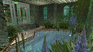 Splashing sounds echoed up from the pond that filled the western wing of the gardens, and she headed that way herself, loath though she was to leave the dappled sunlight of the upper floor. As she stepped into the humid air of the pond room, Clover enjoyed the sight of a few mundane Sims playing in the small pool- her green skin set her apart from the rest of the citizenry in some ways, but knowing that ‘normal’ people also came and enjoyed the comforts of the Glass Garden was something of a relief to her too, for reasons that were hard to articulate.
