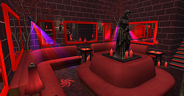 Despite the sanguine nature of the graveyard and the seeming legitimacy of the crypt entrance, the bottom of the stairs truly did open onto the bar of a nightclub, drenched in blood-red light from the club’s trademark logo, a neon facsimile of an EKG flatlining, and crowded with more-than-usually goth-attired revelers. Laura still seemed in something of a stupor as the bartender took her order, and when he turned to Lillith for her choice, she gave him a tight-lipped smile “Thank you, but I’ve found no drink from a bar is quite… to my taste.” She guided Laura further into the club, down another staircase leading even deeper beneath the earth, to a large room where rust-colored couches lined the walls and the steady beat of dance music shook from the nearby open floor. Patrons pressed their bodies together on the vivid red tiles of the dance floor, pulsing in time with the music, but Lillith steered Laura gracefully towards a nearby couch, guiding her to a seat beneath one of the many mirrors lining the walls, seeming to expand the club out infinitely. “There… this is Flatline. Just what you were looking for, isn’t it?” Lillith crooned, brushing a strand of blonde hair aside to reveal the curve of Laura’s neck. Her blood pulsed rapidly beneath her pale skin as Lillith leaned in as if for a kiss, red lips slightly parted to reveal sharp white teeth…