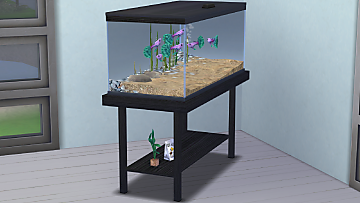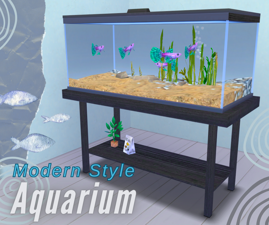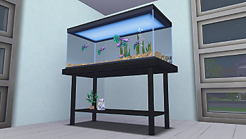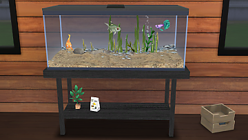 Two different fish tanks, one with a rustic wooden base and a second with a more basic maxis match-ish wooden more...