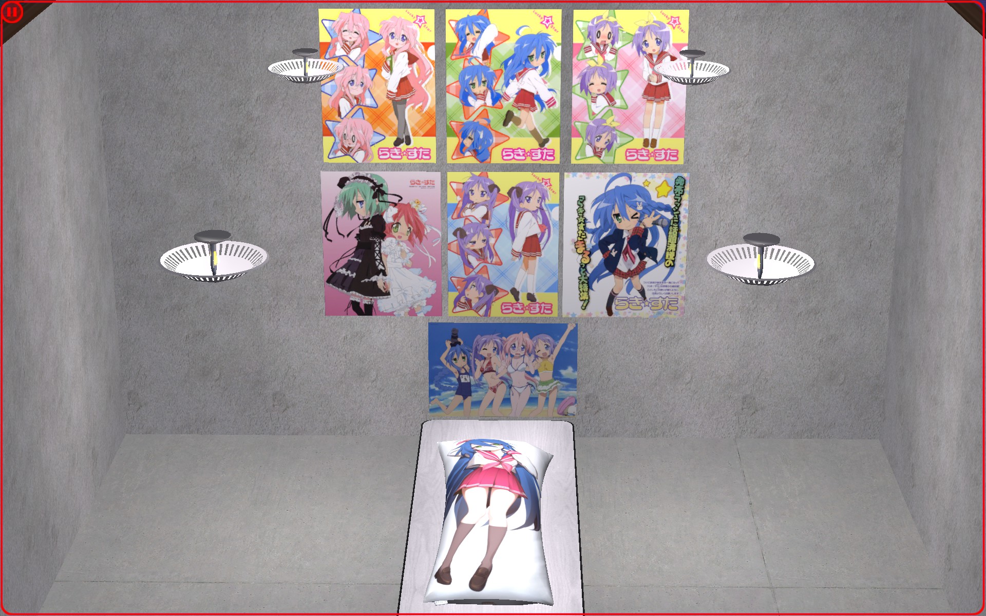 A decorative dakimakura starring Konata Izumi from Lucky Star, bundled with a bunch of Lucky Star and other Kyoto Animation poster recolors that I've been dying for an excuse to upload. Perfect for those lonely, lonely sim nights.