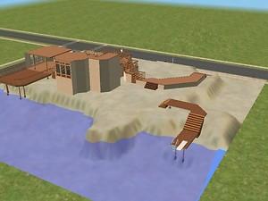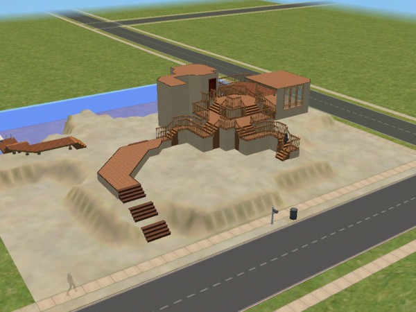 This house is mainly something I came up with while tinkering around with building cheats and tutorials from http://mikeinside.modthesims2.com. It has some interesting features, and is a nice little spot on the beach with plenty of room for your own imagination to redesign and redecorate.