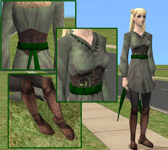 Here are some nice subtle elven-style recolours of Rose's (from Sims TV) Fantasy 17 outfit! (the pretty lady in the red outfit on page 2 of her fantasy selection!