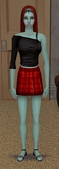 I'm no good at these types of posts ._. The top and shoes are black, with a dark red skirt.